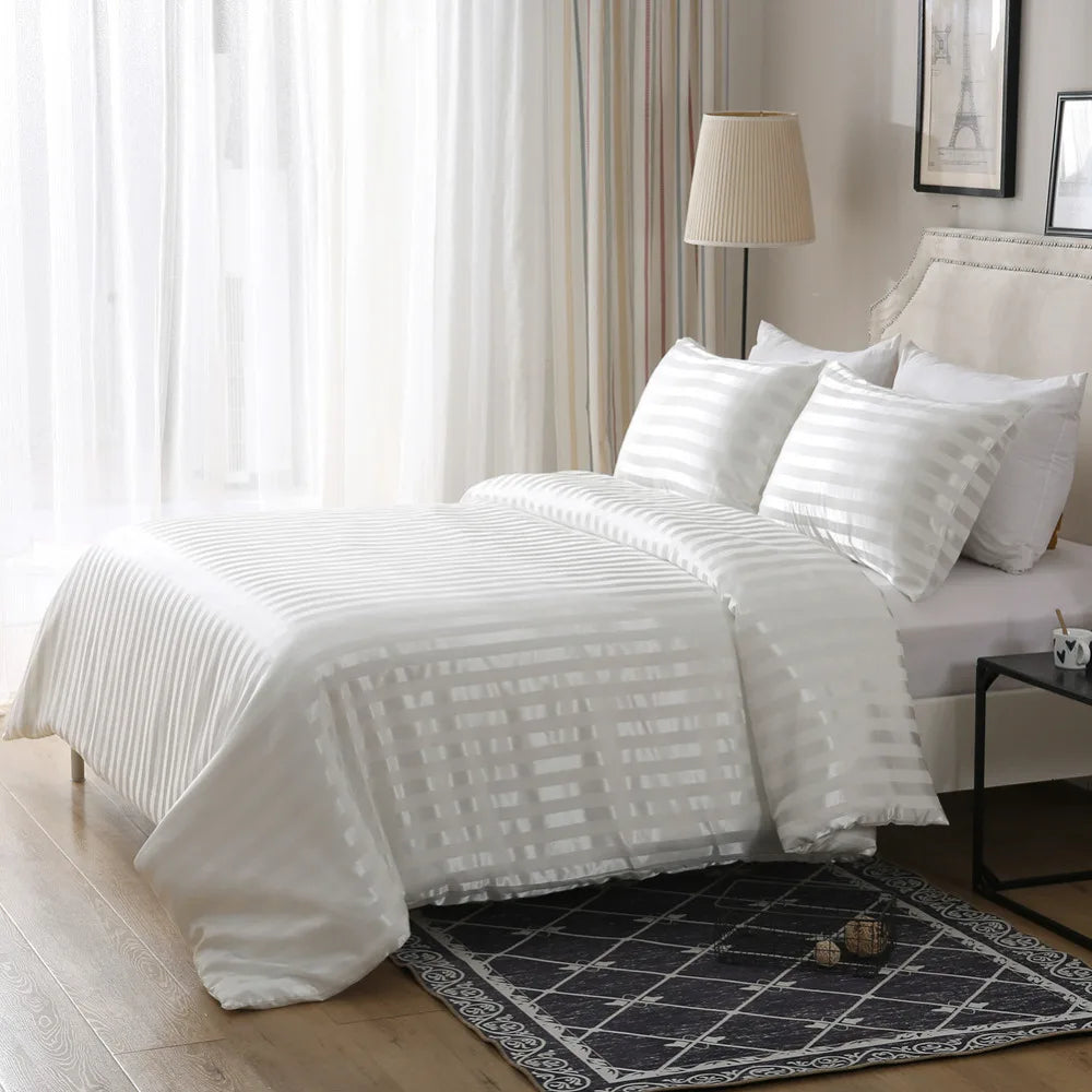 Crisp Comfort: White Striped Cotton Duvet Covers